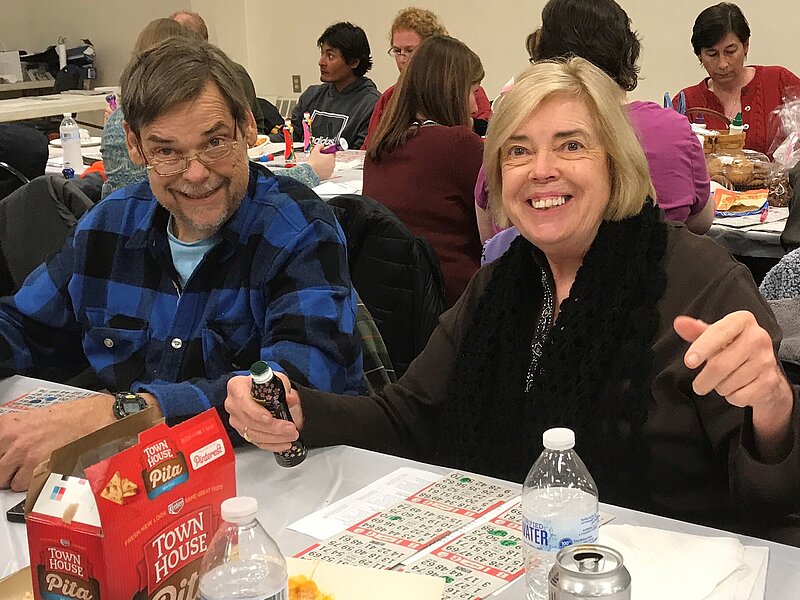When Rob was 40 years old, his kidney failed because of brittle Diabetes since the age of 19. Dialysis was terrible and I thought he would die soon. So, I decided to give him a kidney, so he could get off dialysis and live again. It worked out! The kidney was successful. I got him started. Since then he needed another kidney and he got one from the List. And now, unfortunately, he is back on dialysis again. But he is now 54 years old and has had a good quality of life from the first kidney — better than the other option. The photo here is Rob and me playing Bingo at an event. He played bingo for 3 hours and had a great time.